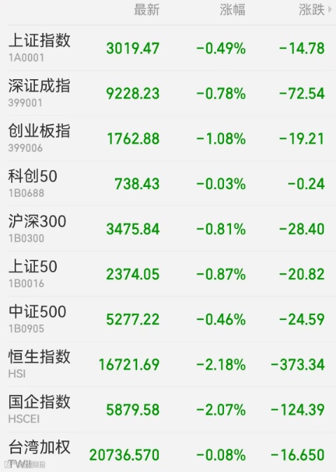 1、A股:A股持续震荡,黄金板块“强者恒强”。截至收盘,上证指数跌0.49%报3019.47点,深证成指跌0.78%,创业板指跌1.08%,北证50跌1.42%,科创50跌0.03%,上证50跌0.87%,深证50跌0.95%,万得全A跌0.70%,万得微盘股指数跌0.56%,万得双创跌0.92%。A股成交额为8146.3亿元,北向资金净卖出73.85亿元,中国平安遭净卖出5.71亿元最多,兆易创新获净买入3.4亿元居首。