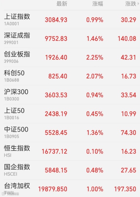 2、港股:港股低开后震荡走高,恒生指数收涨0.1%报16737.12点,恒生科技指数涨1.25%,恒生国企指数涨0.48%。科技股表现强势,京东健康涨逾6%领涨蓝筹。工业股涨幅居前,东风集团股份涨逾17%。大市成交957.77亿港元,南向资金净买入额为29.31亿港元,小米集团-W获净买入3.32亿港元最多,理想汽车-W遭净卖出2.92亿港元居首。中国台湾加权指数收盘涨1.0%,报19879.86点。