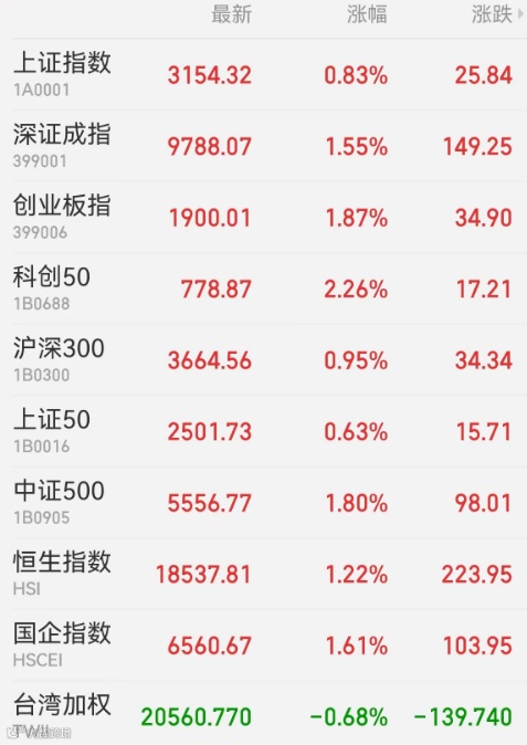 1、A股:A股放量上涨,锂电池板块掀涨停潮,航运、军工股走强,中远海发封板,中远海控大涨。截至收盘,上证指数涨0.83%报3154.32点,深证成指涨1.55%,创业板指涨1.87%,北证50涨0.40%,科创50涨2.26%,上证50涨0.63%,深证50涨1.11%,万得全A涨1.24%,万得微盘股指数涨1.71%,万得双创涨1.66%。A股成交额升至9057亿元,北向资金净买入80.14亿元,三一重工获净买入2.12亿元居首,美的集团遭净卖出2.9亿元最多。