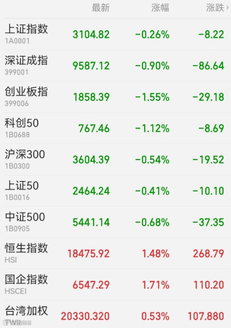 1、A股:A股4月交易收官,合成生物概念爆发。截至收盘,上证指数下跌0.26%报3104.82点,深证成指跌0.90%,创业板指跌1.55%,北证50跌0.12%,科创50跌1.12%,上证50跌0.41%,深证50跌0.92%,万得全A跌0.57%,万得微盘股指数跌0.57%,万得双创跌0.92%。A股成交额为1.04万亿元,北向资金净卖出86.17亿元,分众传媒遭净卖出5.28亿元最多,招商银行获净买入2.94亿元居首。4月份,上证指数涨2.09%,深成指涨1.98%,创业板指涨2.21%,均连升3月。
