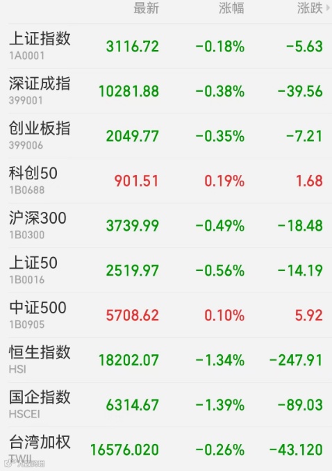 4、美股:美国三大股指小幅收涨,道指涨0.22%,标普500指数涨0.14%,纳指涨0.09%。安进涨1.98%,微软涨1.32%,领涨道指。万得美国TAMAMA科技指数涨0.34%,谷歌涨0.83%,特斯拉跌1.19%。中概股多数下跌,亨达海天跌25%,开心汽车跌24.79%。上周,道指跌0.75%,标普500指数跌1.29%,纳指跌1.93%。