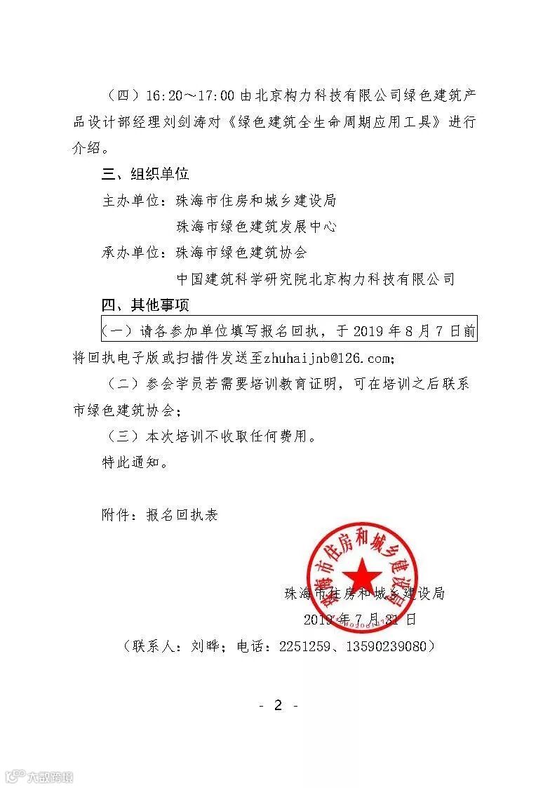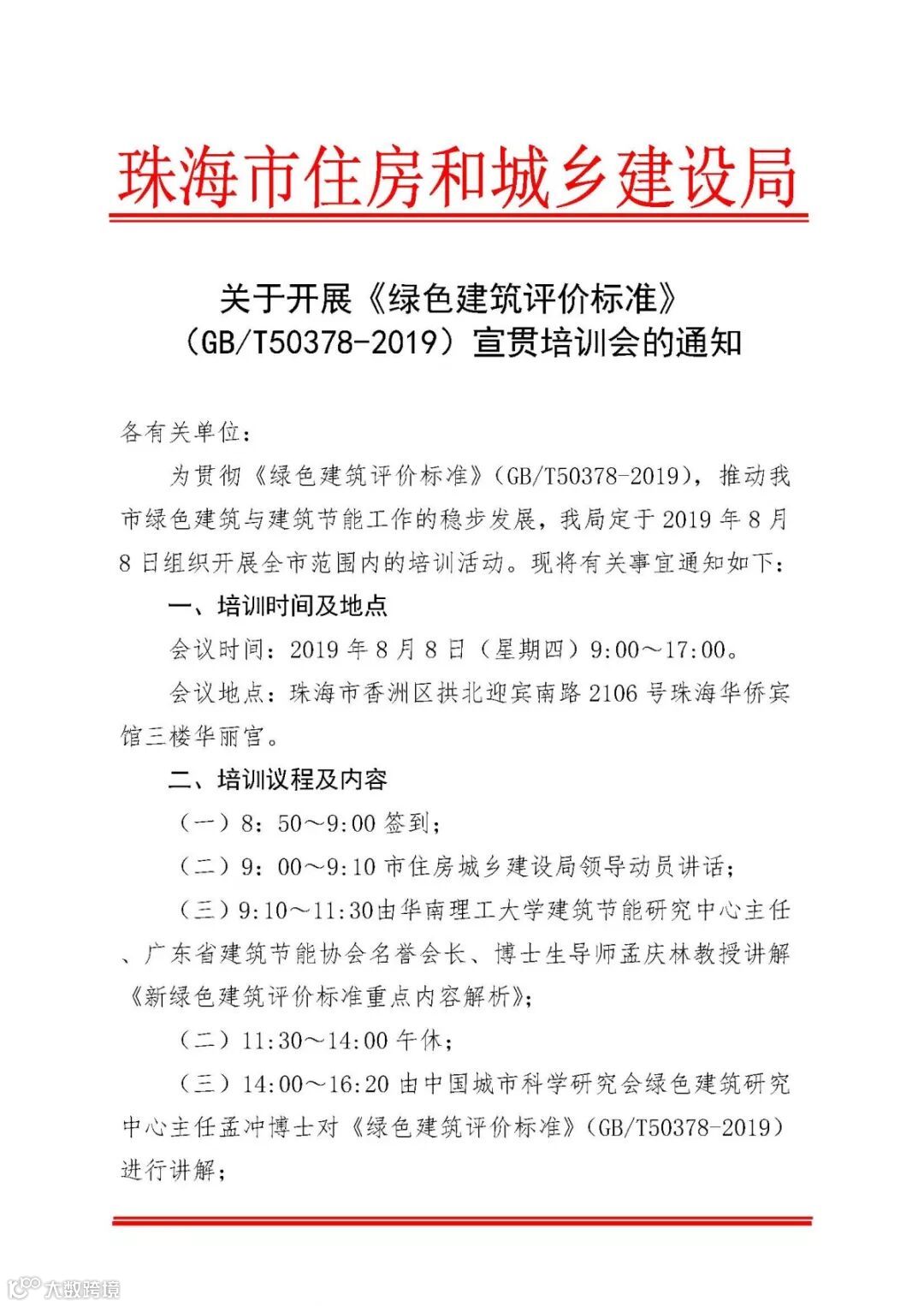 为贯彻《绿色建筑评价标准》(GB/T50378-2019),推动我市绿色建筑与建筑节能工作的稳步发展,我局定于2019年8月8日组织开展全市范围内的培训活动。现将有关事宜通知如下: