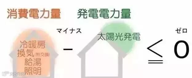 独立住宅内部消耗的电力数量(照明、热水供应、把室内污浊的空气换成新鲜空气、制冷制热空调等方面所消耗的电力)减去太阳能发电等所产生的电力数量小于等于零。