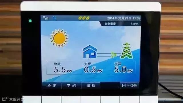 室内的太阳能运营信息表显示,当时的发电是5.5千瓦,但是家里只用了0.5千瓦。那么多余的5.0千瓦电力干什么用呢?是卖给电力公司,一个月卖电的收入,大约是2万日元(约1200元人民币)。
