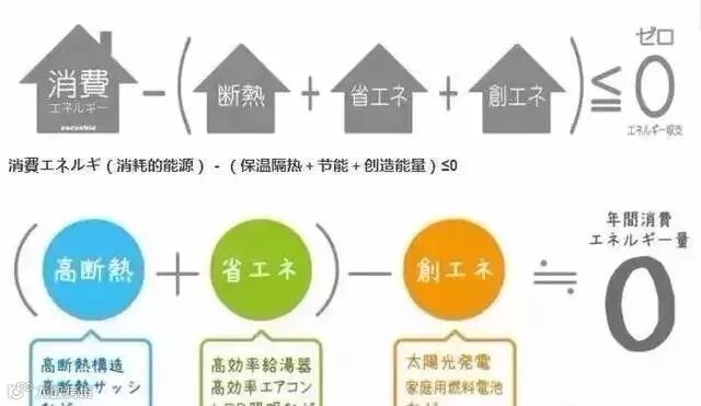消費エネルギ(消耗的能源)-(保温隔热+节能+创造能量)≤0
