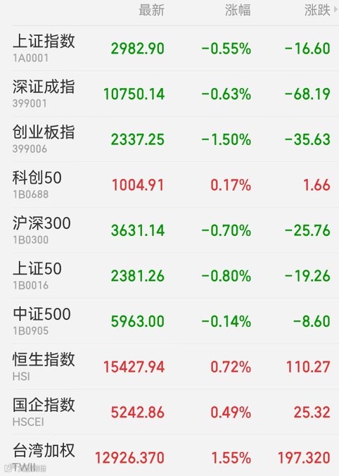 1、A股:A股三大指数小幅高开后震荡回落,上证指数收盘跌0.55%报2982.9点,深证成指跌0.63%,创业板指跌1.5%,万得全A、万得双创分别跌0.55%、1.02%;市场全天成交9248亿元。盘面上,钠离子电池、工业母机、储能等热点题材集体熄火,芯片、地产则趁机走强。白酒和医药冰火两重天,茅台盘中跌超5%;医药内部也剧烈分化,中药股掀涨停潮,眼科权重则遭大资金出货。