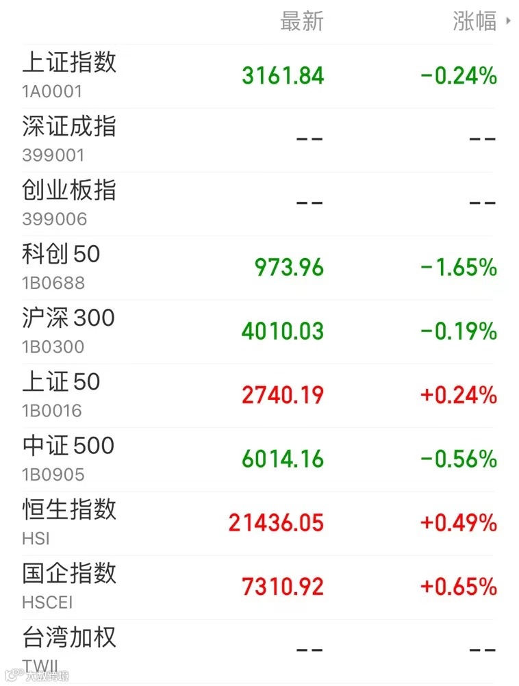 1、A股:A股冲高回落,市场交投略为清淡,超3800只个股下跌;半导体、信创、新能源车、零售、白酒题材出现调整,煤炭、保险逆势上涨,市场萎靡之际资金抱团高位股。截至收盘,上证指数跌0.24%报3161.84点,深证成指跌0.59%,创业板指跌1.13%,科创50指数跌1.65%,万得全A跌0.49%,万得双创跌1.2%;市场成交额7421.9亿元。北向资金实际净买入超76亿元,连续6日累计加仓超410亿元,中国平安、贵州茅台、五粮液分别获净买入8.92亿元、4.61亿元、4.29亿元。
