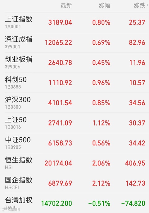 1、A股:沪深两市全天呈小V走势,资金开启尘封已久的“吃药喝酒”行情,创业板指则因锂电及光伏权重下跌弱于主板,芯片板块持续活跃,午后部分资金回流机器人板块。截至收盘,上证指数收涨0.8%报3189.04点,深证成指涨0.69%,创业板指涨0.45%,科创50涨0.96%;万得全A、万得双创分别涨0.86%、0.9%;大市全天成交不足9000亿元。