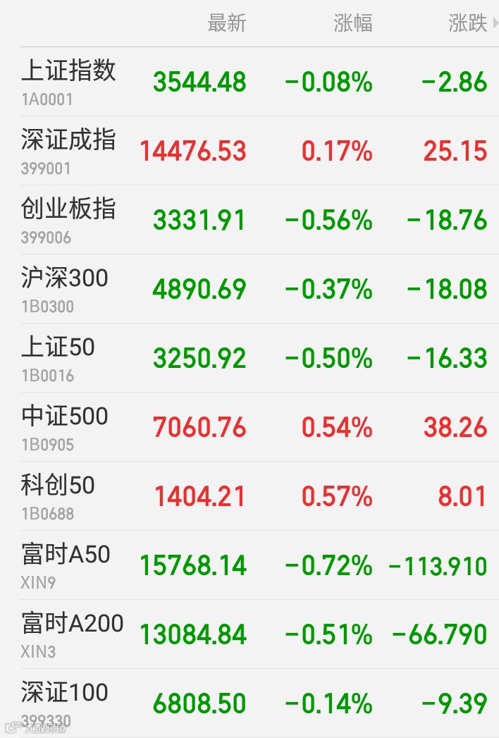 1、A股:沪深股指全天维持震荡态势,大市成交额连续7日超万亿,新股首秀连续7日出现破发。截至收盘,上证指数跌0.08%报3544.48点,深证成指涨0.17%报14476.53点,创业板指跌0.56%报3331.91点,万得全A涨0.24%报5693.32点。光伏、风电板块整体造好,隆基股份再创新高。苹果、元宇宙、家电板块大涨,美的集团、歌尔股份涨近6%。稀土、白酒、锂矿、CRO板块调整,北方稀土跌超9%,五粮液、药明康德、天齐锂业跌超5%。宁德时代午后一度升超6%,市值超过工商银行跃居A股第二位,之后回落并收涨1.69%。中国中免跌停,因三季度增速下滑。上港集团尾盘一度跌停。