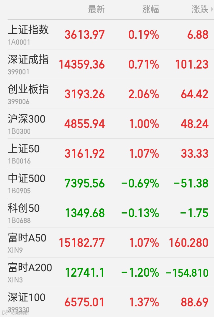1、A股:上证指数全天剧烈震荡,一度跌超1%后顽强翻红,创业板指在迈瑞医疗的引领下录升2%。盘面上,高低切换明显,“喝酒吃药”行情再现,风电板块再度爆发;煤炭、钢铁、石化、稀土、锂板块调整。截至收盘,上证指数涨0.19%报3613.97点,深证成指涨0.71%报14359.36点,创业板指涨2.06%报3193.26点。两市成交额连续第43个交易日超1万亿,追平2015年创下的历史纪录。本周,上证指数跌2.4%,创业板指跌超1%。