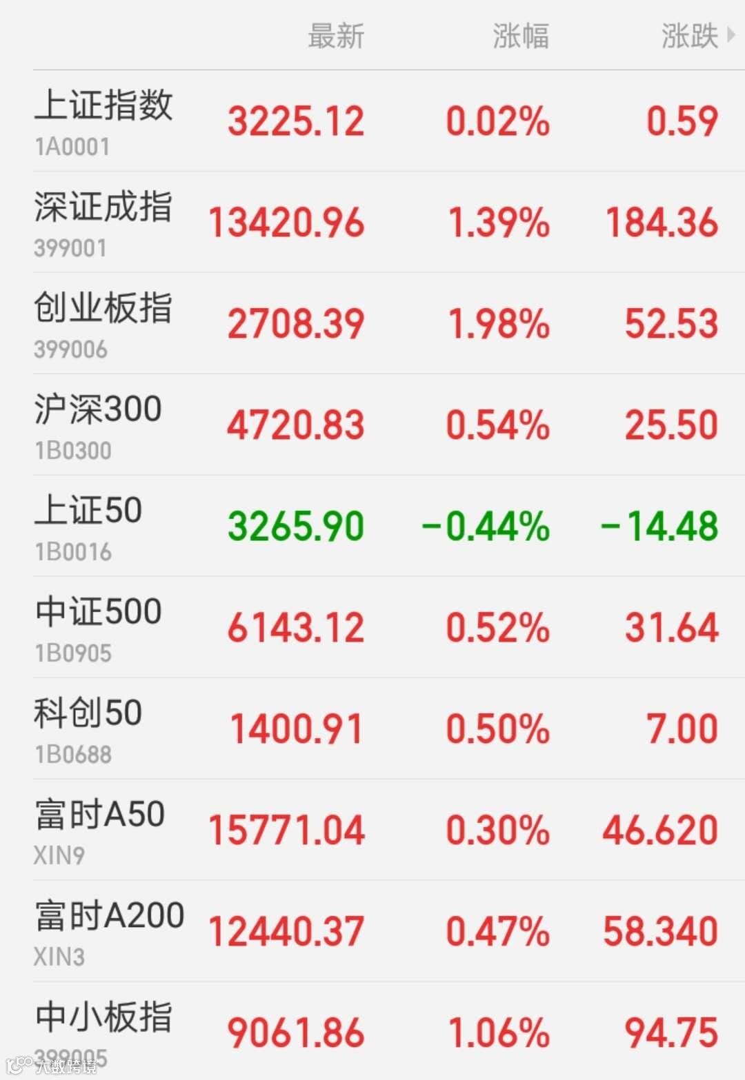 1、A股:上证指数报3225.12点,上涨0.02%,成交额3253.22亿。深证成指报13420.96点,上涨1.39%,成交额4871.10亿。创业板指报2708.39点,上涨1.98%,成交额2312.23亿。两市合计成交8124.32亿。盘面上,白酒板块领涨,家电、新能源、汽车整车板块同样涨幅靠前。