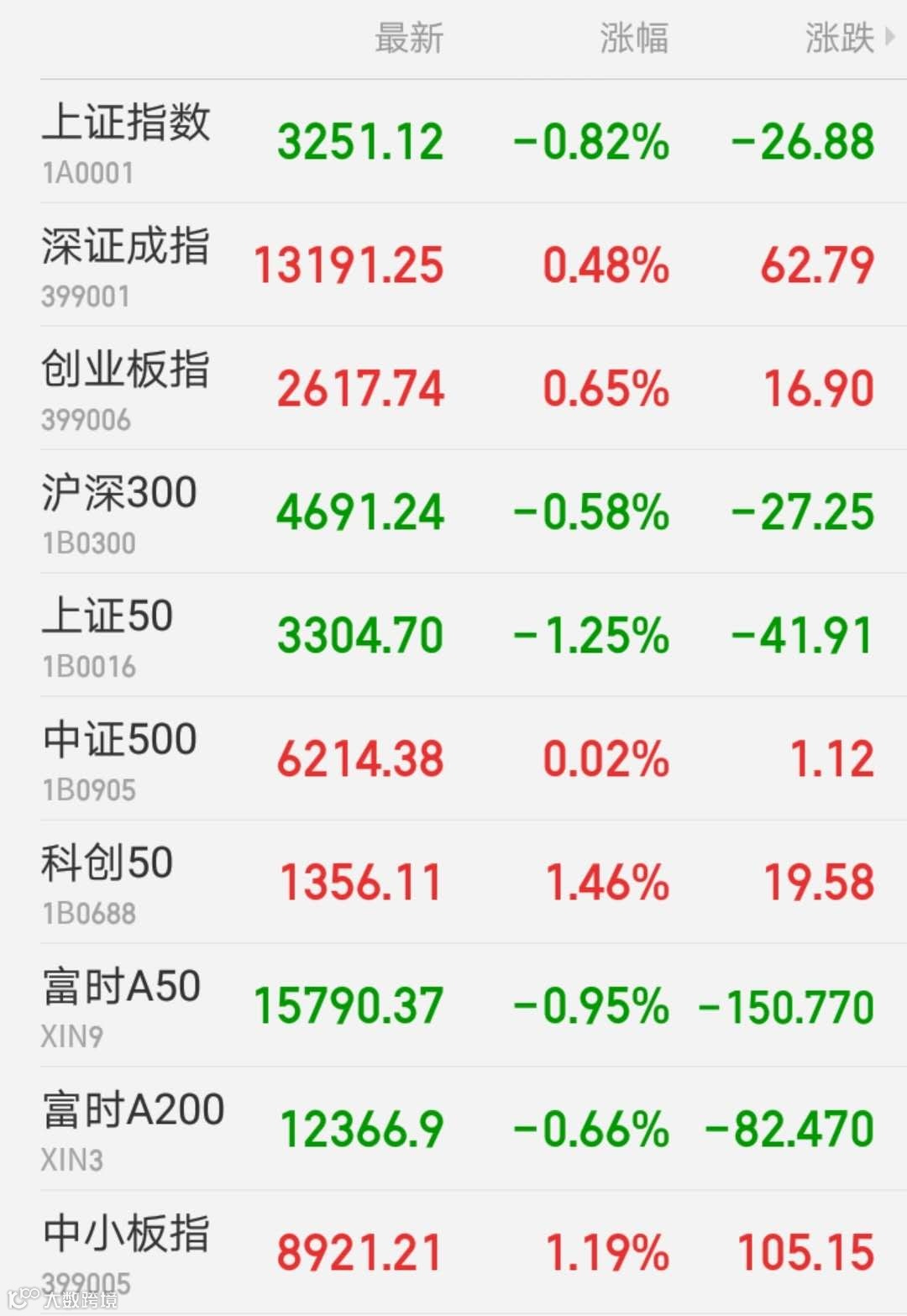 1、A股:沪深股市走势分化,白酒股涨跌不一,洋河股份涨2.5%,贵州茅台三季报业绩低于预期,国有股东减持套现逾200亿元,股价大跌4.22%。上证指数收报3251.12点,跌0.82%,连跌四日;创业板指涨0.65%,深证成指涨0.48%,科创50涨1.47%;万得全A跌0.16%,成交6257亿元,较前上一交易日缩减约500亿元。
