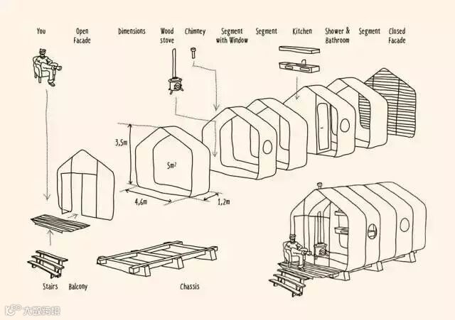 包裹着一个房屋模块搭建而成的