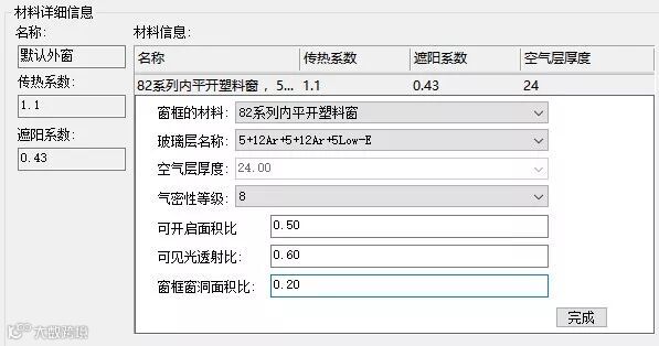 在进行窗体材料选型时,软件增加了《被动式超低能耗绿色建筑技术导则》(居住建筑)、《河北省被动式超低能耗居住建筑节能设计标准》DB13(J)/T273-2018的常用窗体型材供用户选择,外窗热工性能可以达到0.7~1.4。