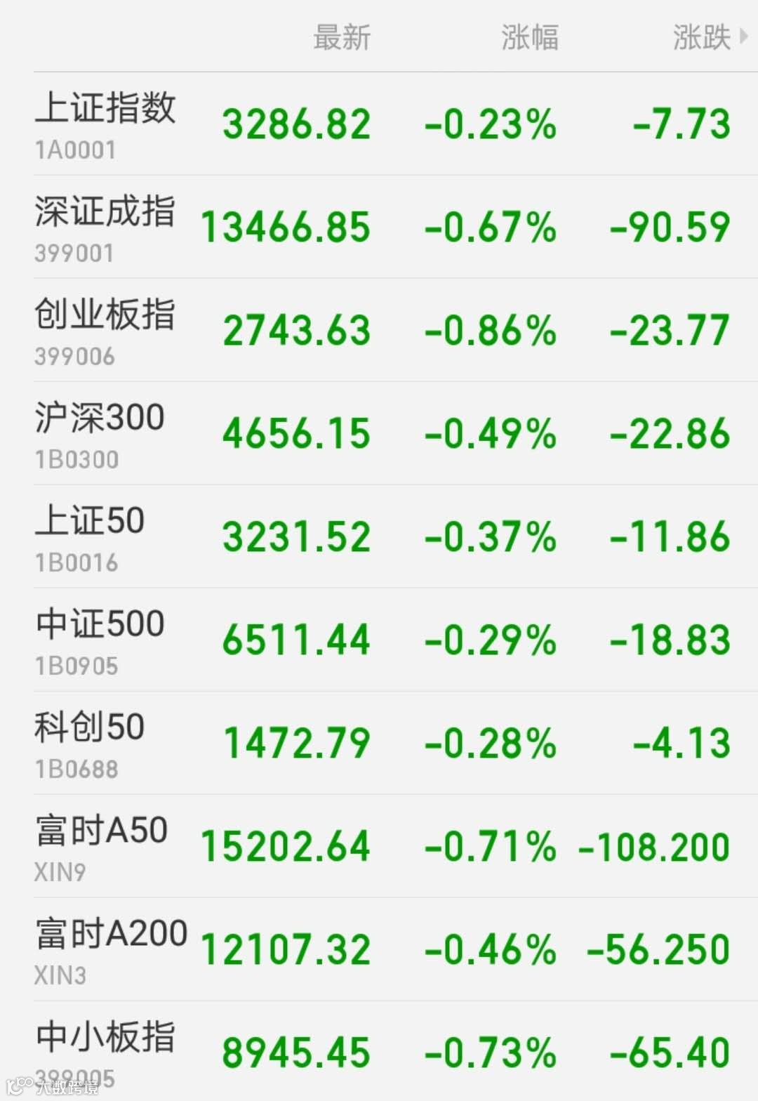1、A股:A股窄幅整理,疫苗概念持续受追捧,科技股多数低迷。上证指数收跌0.23%报3286.82点,深证成指跌0.67%报13466.85点,创业板指跌0.86%报2743.63点,科创50跌0.28%,万得全A跌0.33%。两市成交额再破万亿。