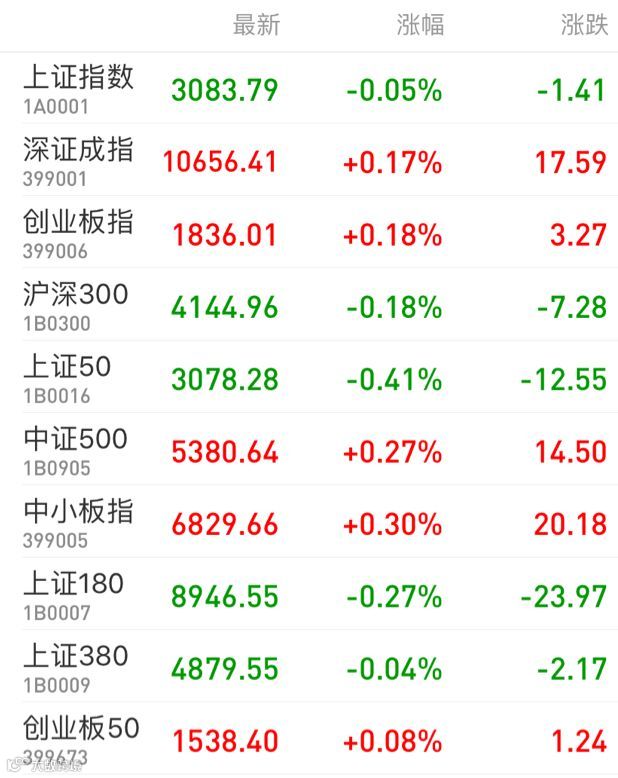 1、A股:上证指数微幅收跌0.05%报3083.79点,上周累计上涨2%,深证成指涨0.17%报10656.41点,周涨约4%,创业板指涨0.18%报1836.01点,周涨约4%,万得全A涨0.1%。两市成交6954亿元,较上日有所收窄。北向资金净流入33.61亿元,上周累计净流入177.74亿元。中国建筑、中国平安、海康威视当日分别获净买入6.47亿元、3.62亿元、2.9亿元。贵州茅台遭净卖出14.83亿元,创沪港通开通以来最大单日净卖出。