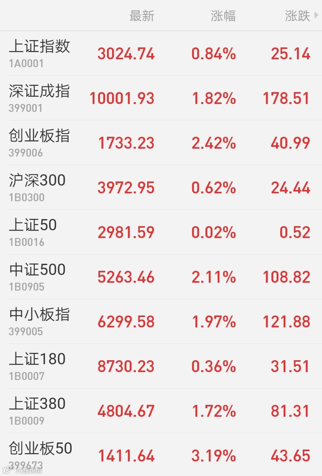 1、A股:A股连升六日,上证指数收盘涨0.84%,创业板指涨2.42%站上1700点。科技股强势爆发,5G、半导体、软件等板块掀涨停潮。*ST信威连续42日跌停。北向资金全天净流入27.85亿元,已连续8日净流入,9月已净流入近308亿元。