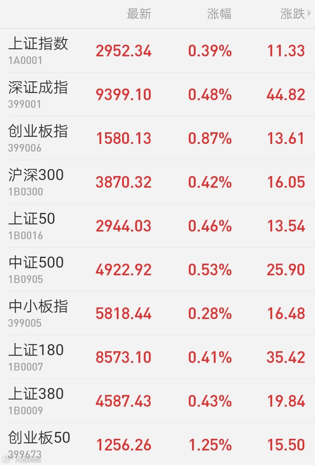 1、A股:沪深两市冲高回落,上证指数收涨0.39%报2952.34点,深证成指涨0.48%。创业板指涨0.88%报1580.13点,创近3个月新高。两市成交3842亿元。科创板方面,继昨日全线收涨之后,今日仅中国通号微幅收跌,心脉医疗尾盘发力收涨近16%。行业方面,债转股概念爆发,多元金融板块表现强势;黄金股午后走升,游戏板块全线复苏;消费电子题材小幅回撤。