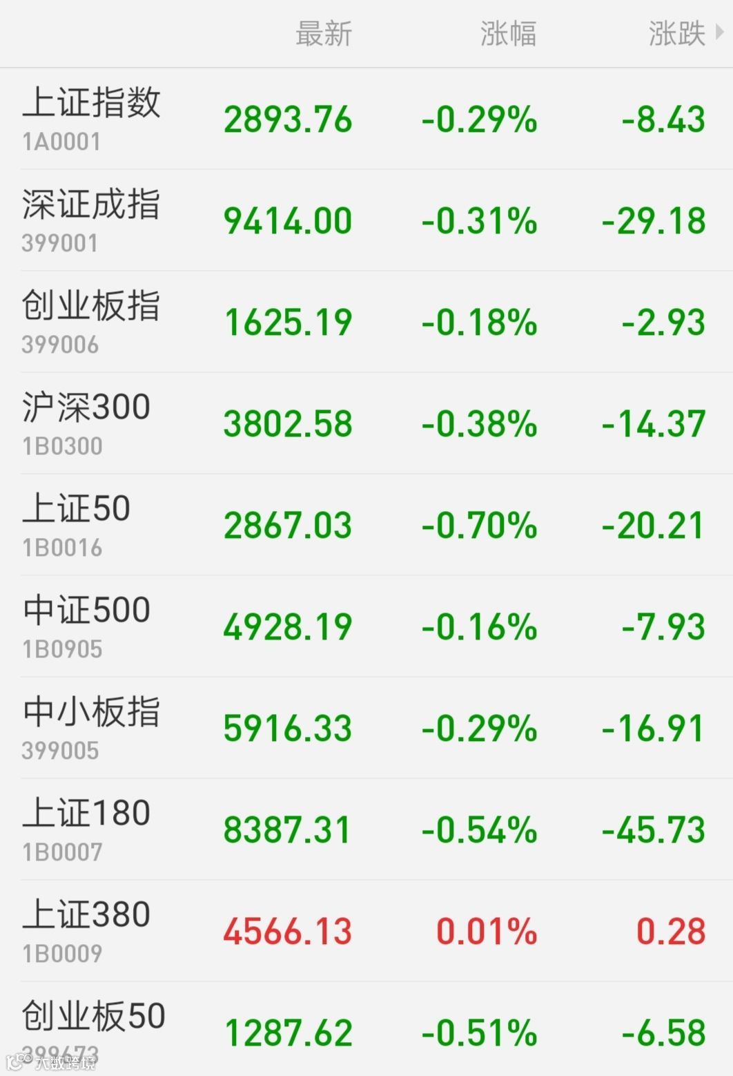 1、A股:A股小幅震荡,上证指数收盘跌0.29%报2893.76点,深成指跌0.31%报9414点,创业板指跌0.18报1625.19点。两市全天成交额4936亿元,较上一日有所缩减。北向资金全天净流出7.78亿元,上日大幅净流入112.71亿元。行业方面,农业股午后涨幅扩大,正虹科技、正邦科技等多股涨停。汽车、零售、军工板块涨幅收窄,盘中多数个股冲高回落。医药、金融股回调明显。个股方面,深赛格午后再度涨停,获8连板;深大通盘中涨停,录得8日7板;*ST信威连续34日一字跌停;雏鹰退再度跌停。