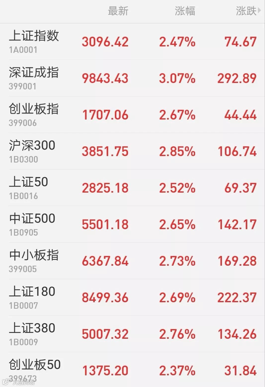 1、A股:大消费板块全线爆发,上证综指收涨2.47%报3096.42点,连续收复5日和10日线;深证成指涨近300点报9843.43点,创业板指涨2.67%报1707.06点,两市放量成交8300亿元;北上资金今日大幅净流入近34亿元,刷新3月5日以来新高,其中沪股通净流入32.6亿元。