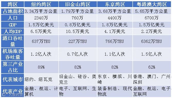 图6:粤港澳大湾区与世界三大湾区对比