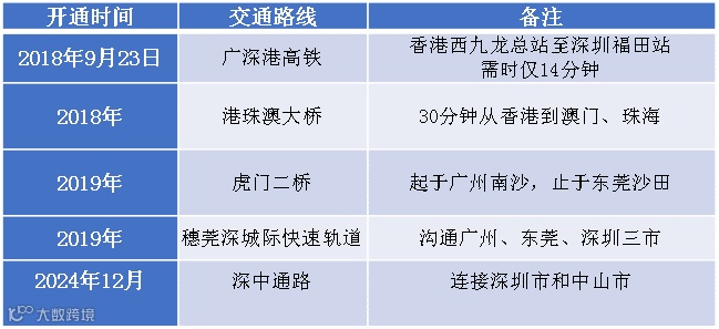 图10:近几年粤港澳大湾区主要交通项目
