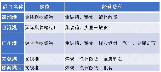 图11:粤港澳大湾区主要港口定位及经营货种