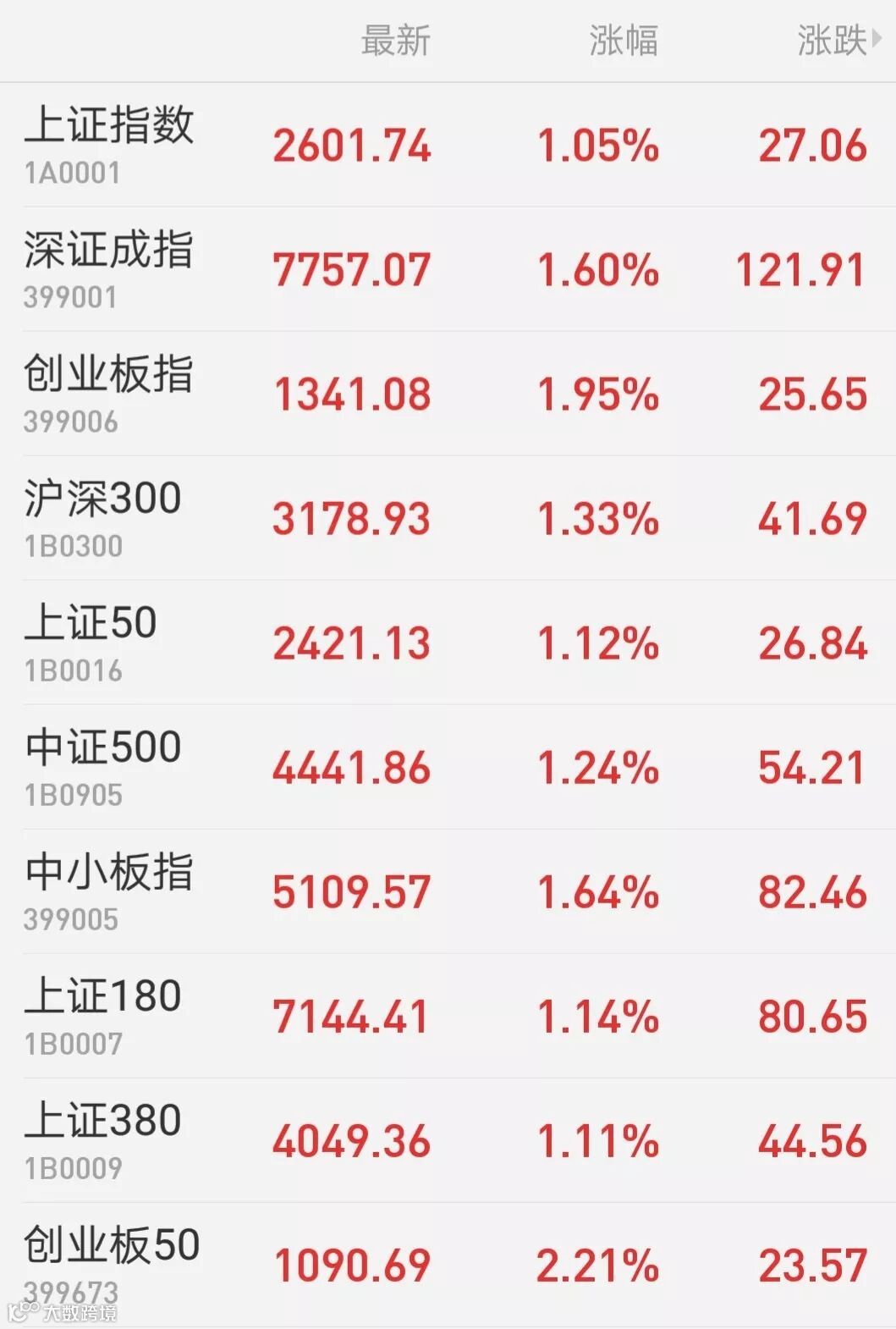 1、A股:上证综指重回2600,收报2601.74点,涨幅1.05%,终结4连跌;深证成指涨1.6%报7757.07点,创业板指涨1.95%报1341.08点,万得全A收涨1.25%。两市成交近3000亿元,北上资金大幅净流入逾25亿元。板块方面,海南板块午后一飞冲天,广电板块掀起涨停潮,5G板块涨势强劲;海运、券商、电气板块表现不俗。创投股全线下杀,热门个股多数杀跌,新华传媒上演天地板。