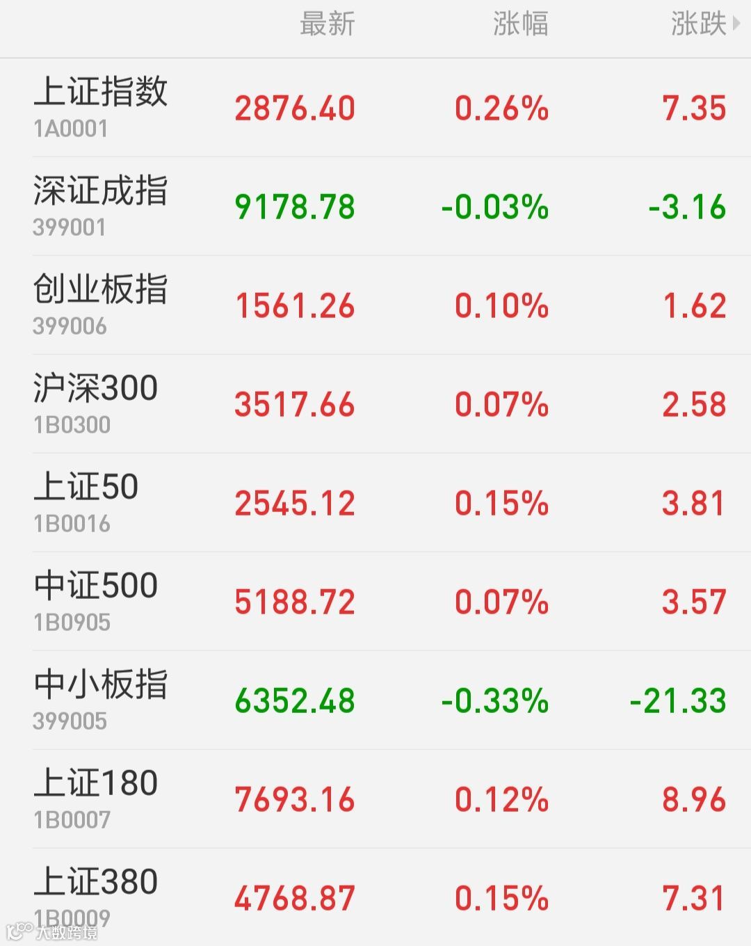 1、A股:上证指数报2876.4点,上涨0.26%,成交额1195.29亿。深证成指报9178.78点,下跌0.03%,成交额1535.84亿。创业板指报1561.26点,上涨0.1%,成交额491.22亿。两市合计成交2731.13亿。从盘面看,石油行业、天然气等板块涨幅居前。