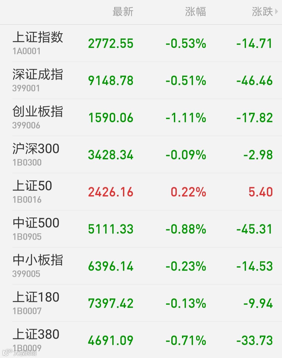 1、A股:上证指数报2772.55点,下跌0.53%,成交额1293.75亿。深证成指报9148.78点,下跌0.51%,成交额1815.53亿。创业板指报1590.06点,下跌1.11%,成交额679.62亿。两市合计成交3109.28亿。从盘面上看,保险,钢铁行业等板块涨幅居前。