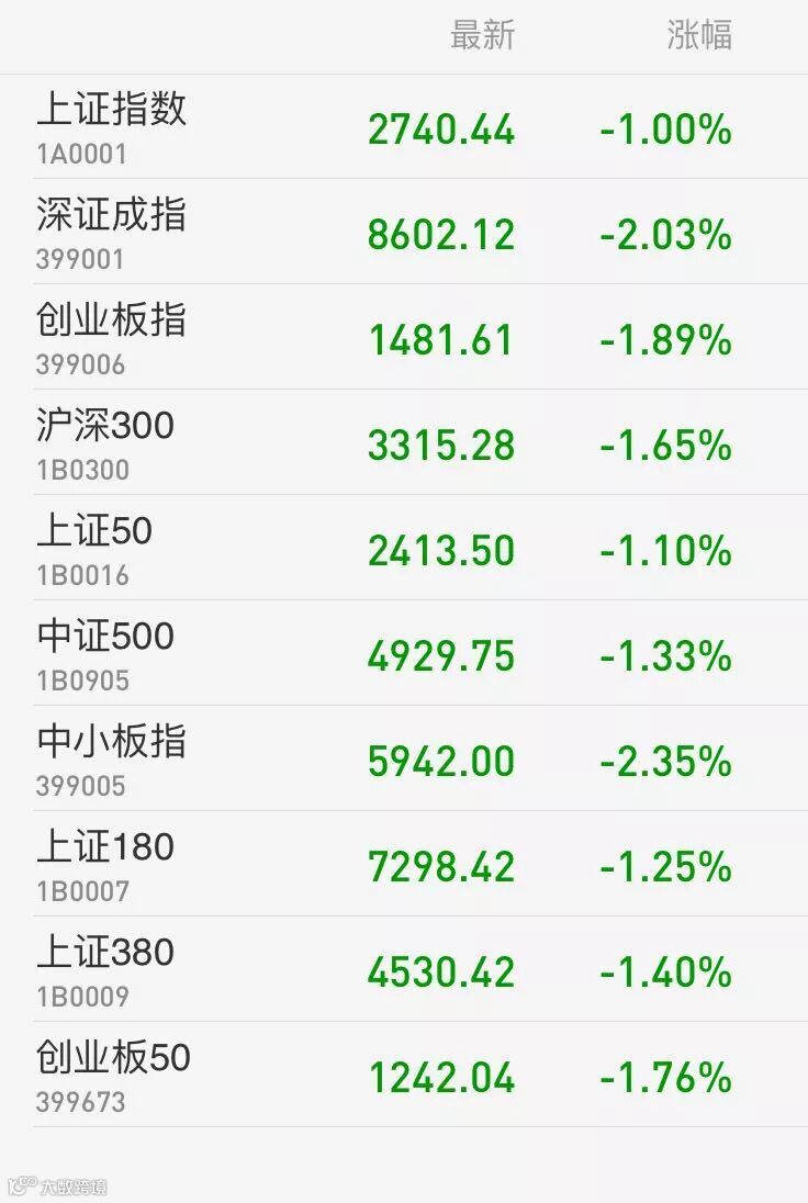 1、A股:上证指数报2740.44点,下跌1%,成交额1291.35亿。深证成指报8602.12点,下跌2.03%,成交额1556.34亿。创业板指报1481.61点,下跌1.89%,成交额449.80亿。两市合计成交2847.69亿。从盘面看,煤炭采选、港口水运等板块涨幅居前。
