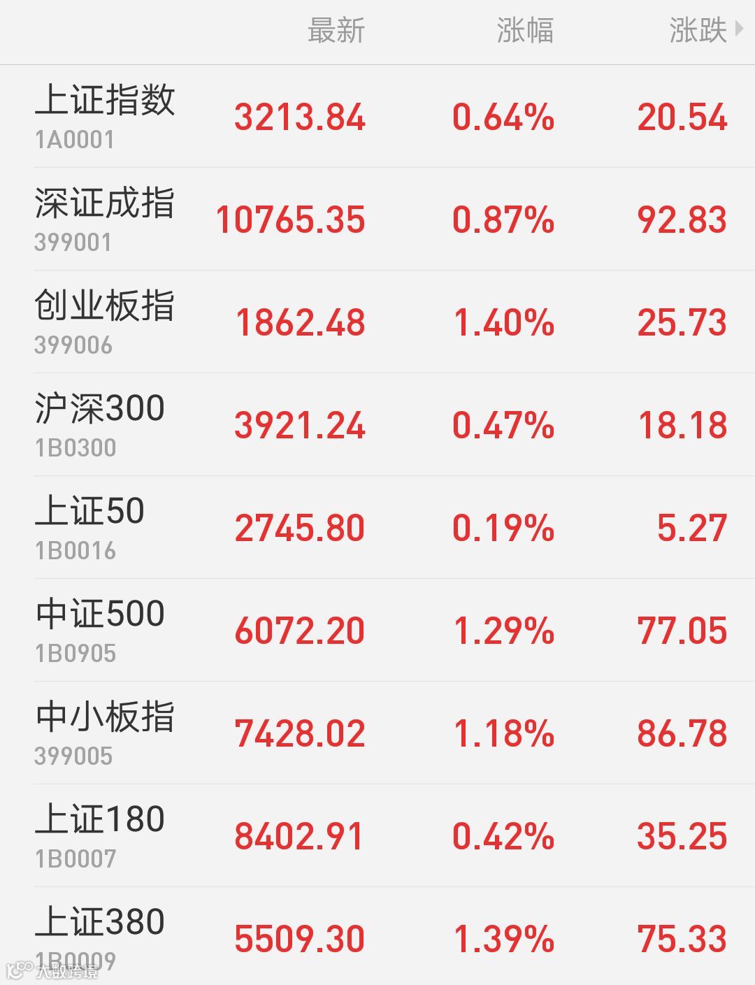 1、A股:上证指数报3213.84点,上涨0.64%,成交额2026.63亿。深证成指报10765.35点,上涨0.87%,成交额2585.56亿。创业板指报1862.48点,上涨1.4%,成交额888.21亿。两市合计成交4612.2亿。从盘面上看,通讯行业、化纤行业等板块涨幅居前。