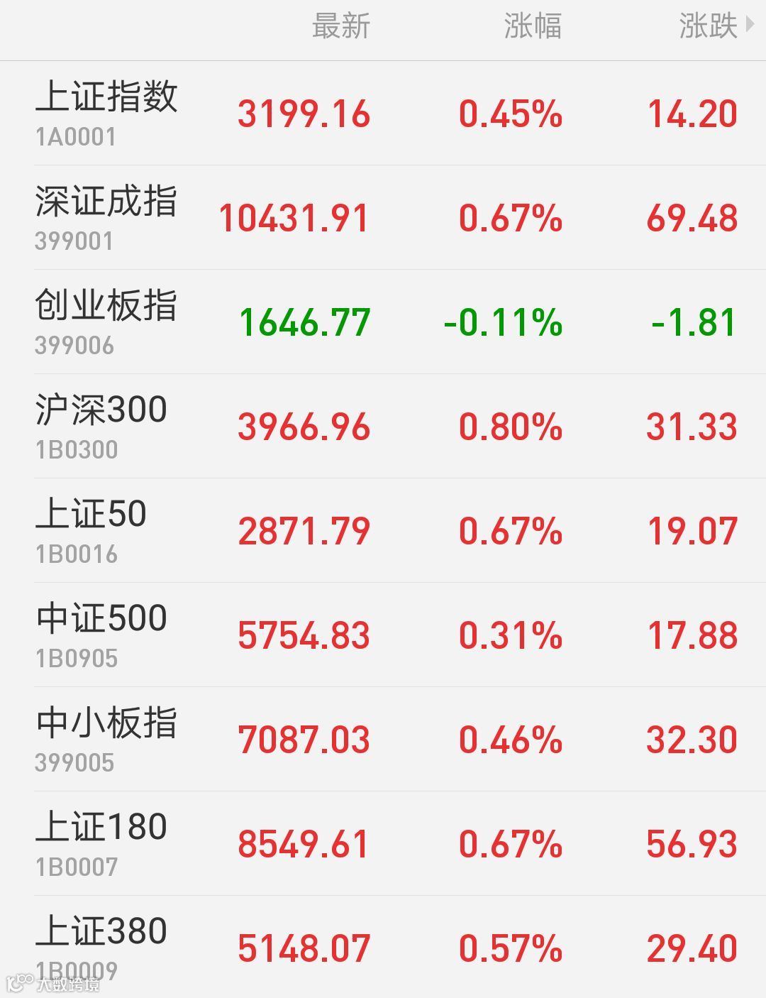 1、A股:上证指数报3199.16点,上涨0.45%,成交额1145.52亿。深证成指报10431.91点,上涨0.67%,成交额1223.07亿。创业板指报1646.77点,下跌0.11%,成交额352.11亿。两市合计成交2368.59亿。从盘面上看,充电桩、钢铁行业等板块涨幅居前。
