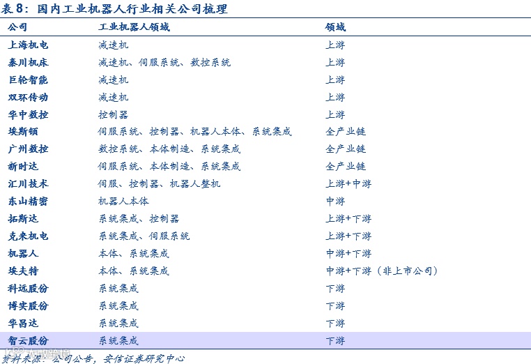 第一关注全产业链领域布局的厂商:全产业链布局有利于形成一体化生产,减少销售中的差价损失以及形成品牌效应。这里主要是针对以及突破上游核心技术后,向整个产业链布局的厂商,建议关注机器人、埃斯顿、拓斯达。
