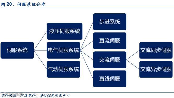 伺服电机是指在伺服系统中控制机械元件运转的发动机,其功能是将电信号转换成转轴的角位移或角速度。作为一种补助马达间接变速装置,伺服电机可使控制速度,位置精度准确,可以将电压信号转化为转矩和转速以驱动控制对象。伺服电机需要受到控制器的控制,在控制信号发出之前,转子静止不动;当控制信号发出时,转子立即转动;当控制信号消失时,转子能及时停转。伺服电机相当于机器人的心脏。伺服系统由伺服电机和控制器构成。传统伺服系统分为液压、电气和气动,主要运用于机器人的电气伺服系统分为直流、交流和步进系统以及包括直线伺服在内的其他伺服系统。直流电机电刷容易磨损形成火花。步进电机由于功率不大,一般用于低精度小功率机器人。交流伺服电机驱动器具有转矩惯量比高、无电刷等优势。所以目前工业机器人的动力源通常使用交流伺服电机。