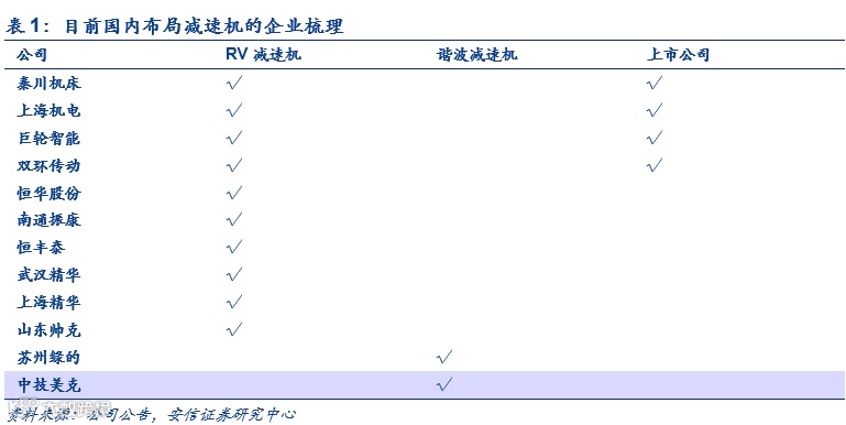 就减速机领域而言,涉足RV精密减速机的上市企业包括秦川机床、上海机电、巨轮智能,新三板公司为恒华股份,非上市公司包括南通振康、恒丰泰、武汉精华、上海精华、山东帅克等,目前涉足谐波减速机的非上市公司为苏州绿的谐波传动科技有限公司、北京中技美克谐波传动有限公司等。国内的减速机在可以运用在冲料上下床、搬运等领域。南通振康的减速机除了寿命以外的其他核心指标均达到甚至超过进口水平:凭借高性价比目前已经得到市场认可。国内沈阳新松、安徽埃夫特等知名机器人企业均批量使用振康RV减速机产品。此前,上海欢颜向南通振康采购1.5万台减速机。苏州绿的在减速机的寿命和技术上也已达到世界领先水平,其已经通过2万小时的精度寿命测试,远高于国际精度寿命6000小时。此外,绿的谐波减速机研发出全新的建立在接触摩擦学基础上的基于曲线(曲面)几何映射理论齿形设计理论,设计出非共轭的谐波啮合齿形,可以在大幅提高谐波减速器使用寿命的前提下,提高其扭矩承受能力。(资料来源:机器人网)