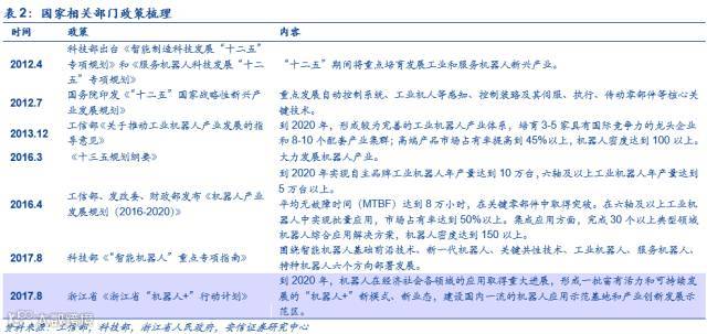 国家政策主要从关键技术突破和国产化率两部分来支持机器人的发展。2012年以来国家科技部、国务院、工信部等从顶层设计角度为我国机器人的发展制定相应政策要求,这一方面有利于督促地方政府加快扶持发展地方机器人产业,另一方面,有利于激发机器人企业的创新动力。