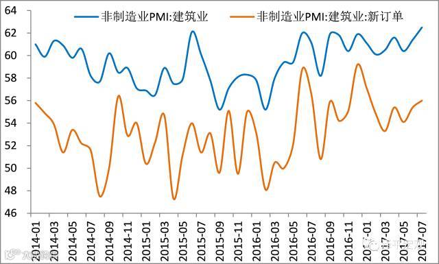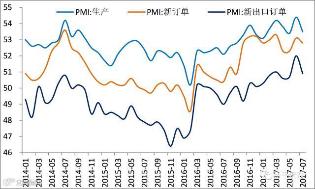 3)内外需求平稳仍在高位。7月新订单和新出口订单指数均有所回落,分别为52.8%和50.9%,较6月均下滑0.3个点。6月出口交货值增长11.7%,比上月加快1个百分点。考虑到美欧先后经过金融去杠杆,经济复苏的可持续性较强,因此2017年下半年出口有望延续改善。进口指数录得51.1%,小幅下滑0.1个百分点,内需维持平稳扩张。