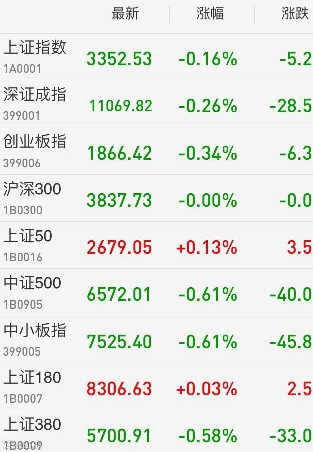 1、A股:上证综指在击破30日均线后企稳回升,收盘跌0.16%报3352.53点,连续三周下挫;深成指跌0.26%报11069.82点,连升六周;创业板指跌0.34%报1866.42点,连跌两周。两市成交4873亿元,上日为5526亿。