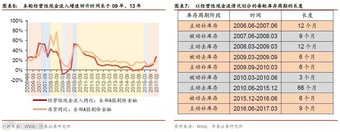 从现金流看,A股非金融企业ROE回升将延续至明年一季度:历史数据来看,资本开支增速的回落滞后于偿债支出增速的回升约两个季度,而ROE的回落滞后于资本开支增速的回落约两个季度。由于2017年一季度A股非金融企业的偿债支出增速仍在回落,所以资本开支增速回升将至少延续至今年三季度,从而A股非金融企业的ROE将继续修复至少4个季度,高点或在明年一季度出现。关注经营性现金流持续改善、资本开支扩张且偿债支出增速连续下降的一级行业建材、机械,二级行业稀有金属、工程机械、景区和旅行社等。