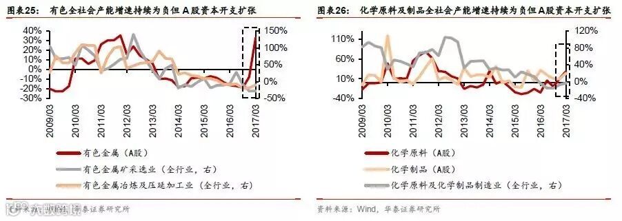 产能角度关注全社会产能增速下降或为负但A股资本开支扩张的行业