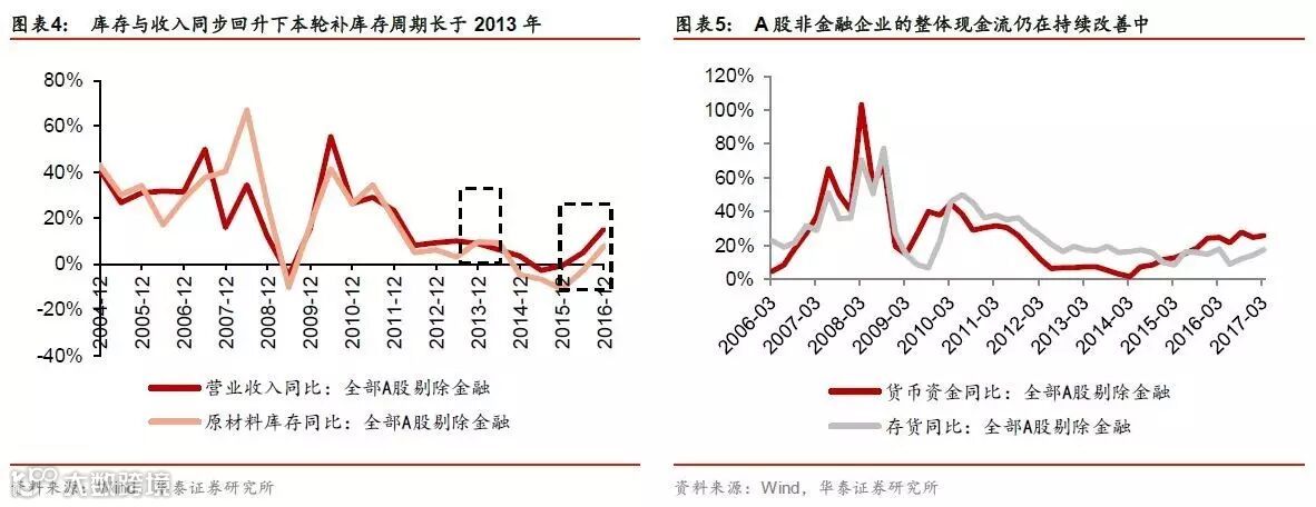 2016年三季度至2017年一季度,A股企业已主动补库存9个月。随着全年盈利增速高点已过,企业在二季度或将进入被动补库存阶段,但我们认为补库存在二、三季度并不会成为企业盈利的拖累项: