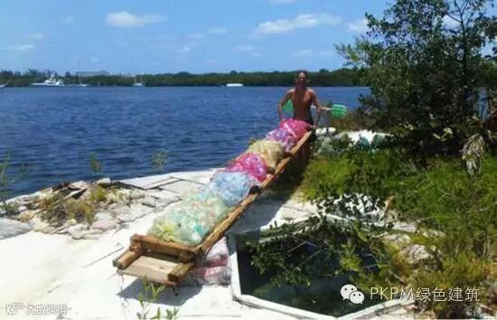 但是从建成的那一天起,大叔的小岛,就一直受到附近邻居的投诉,没过几天当地警方就将他驱离,没收了小岛...2年的心血,心中的梦,就这样付诸东流了。其实当地警方的做法,救了他一命。就在被驱离后三天,小岛就被一场台风掀翻、冲散了,然而大叔并没打算放弃,他一定要住进心中那片桃花源!45岁的他决定,换个地方,再造一个塑料瓶小岛!首先要挑个风水好的地方,太平洋的台风惹不起,于是他去了墨西哥东海岸。