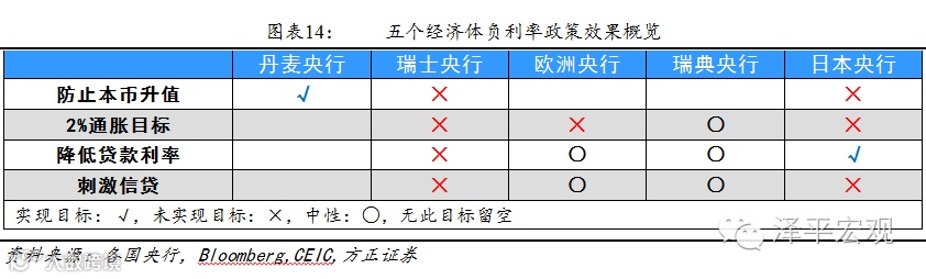 我们发现,负利率仅仅在丹麦达成防止本币升值、在日本达成降低贷款利率的目标,效果非常有限。