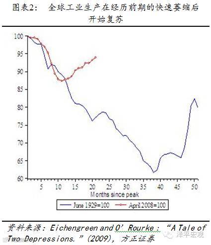 2007年12月至2009年6月的大衰退(TheGreat Recession)期间,以美国为代表的主要发达经济体迅速采取了超宽松货币政策,对于防止经济崩溃以及通货紧缩的进一步恶化起到了关键作用,全球工业生产和全球贸易在经历与大萧条期间相似的迅速萎缩后并没有继续恶化,防止了大衰退演变为大萧条。