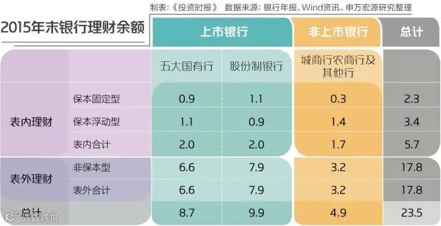 而根据《中国银行业理财市场年度报告(2015)》,2015年底,非保本浮动收益类产品的余额约17.43万亿元,占整个理财市场的比例为74.17%。与我们估算的结果相近。