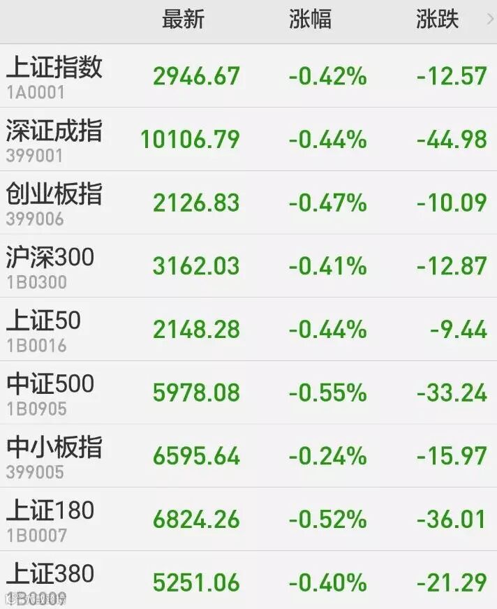 3、美股:美国股市收跌。截至收盘,标普500指数跌0.18%,报2087.79点。道琼斯工业平均指数跌0.15%,报17977.24点。纳斯达克综合指数跌0.21%,报4895.79点。