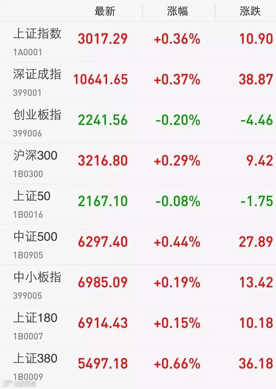 3、美股:标普500指数收涨11.18点,涨幅0.54%,报2099.73点。道指收涨78.00点,涨幅0.44%,报17918.62点。纳指收涨36.26点,涨幅0.75%,报4859.16点。