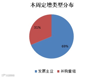 1. 本周新增定增董事会预案16家,较上周的26家下降了50%。其中11家公司募资发展主业或者发展产业链上下游,5家涉及并购重组。发展主业与并购重组的分布与上周基本相同,上市公司对未来经济基本面预期向好,间接显示宏观经维持稳定态势。