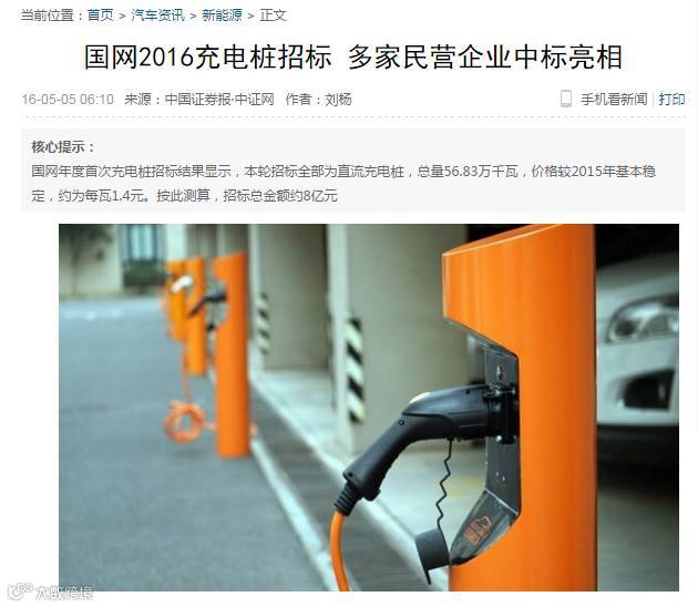 业内人士认为,此轮招标占主导地位的应该是直流充电设施招标,在6000多个直流充电设备中,高速路直流充电设施达约400多个。2015年的招标国网累计发布48个充电桩标包,89家企业参与招标,最终仅有16家企业中标,多为国网系统内企业,其中许继电气中标包数5个、国电南瑞4个、中恒电气4个。今年相较2015年的国网充电设备招标的力度进一步加大,首轮的总体招标规模预计在6.5亿元左右。